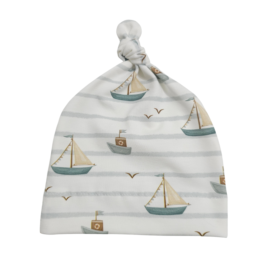 Unser liebevoll zusammengestelltes Set aus der Küstenkind-Kollektion Boote vereint maritimen Charme mit durchdachtem Design. Es besteht aus einem gemütlichen Strampler, einer Mütze nach Wahl – entweder als Bindemütze oder Knotenmütze – sowie einem passenden Halstuch.