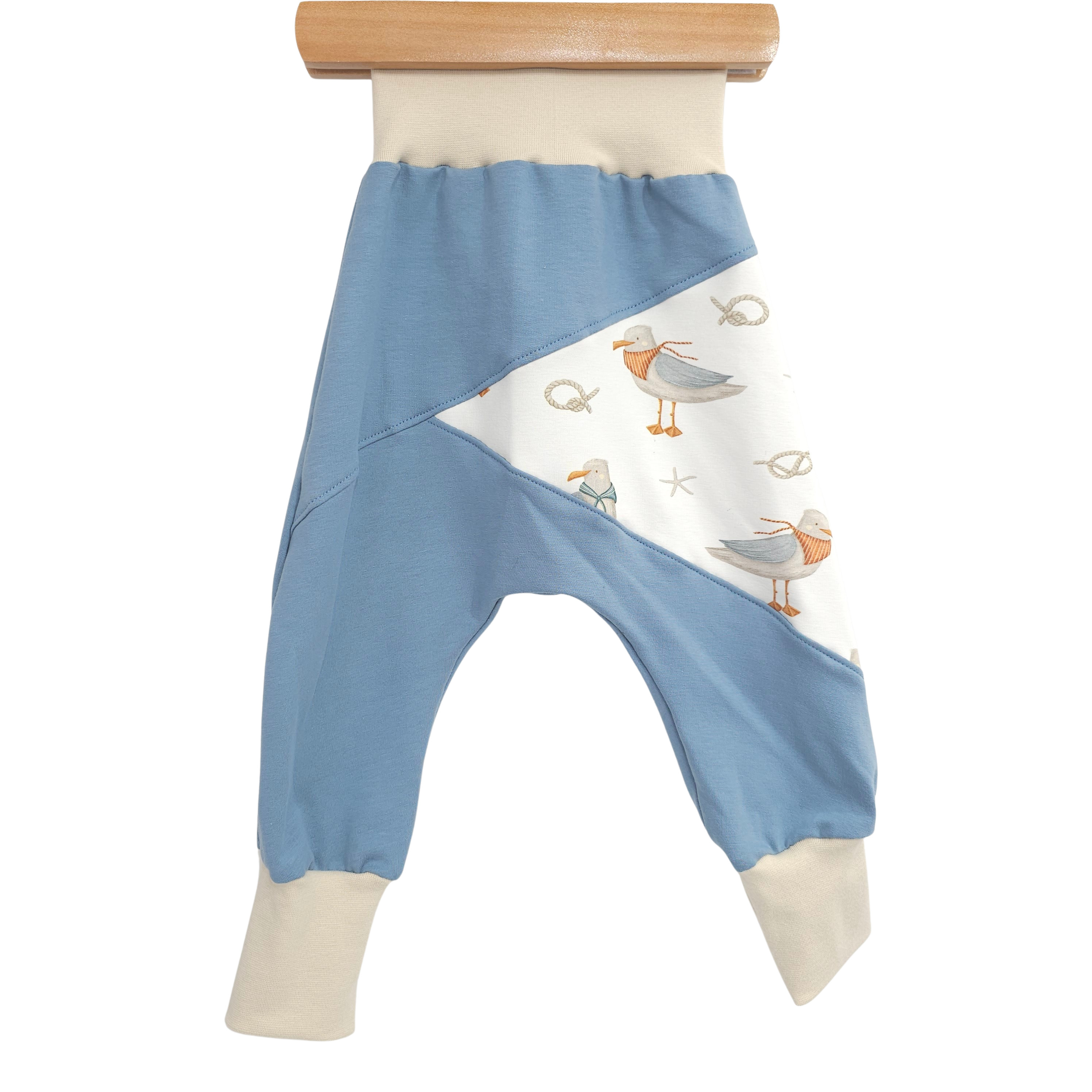 Pumphose meno triangolo Küstenkind Möwe Sweat taubenblau Bündchen beige