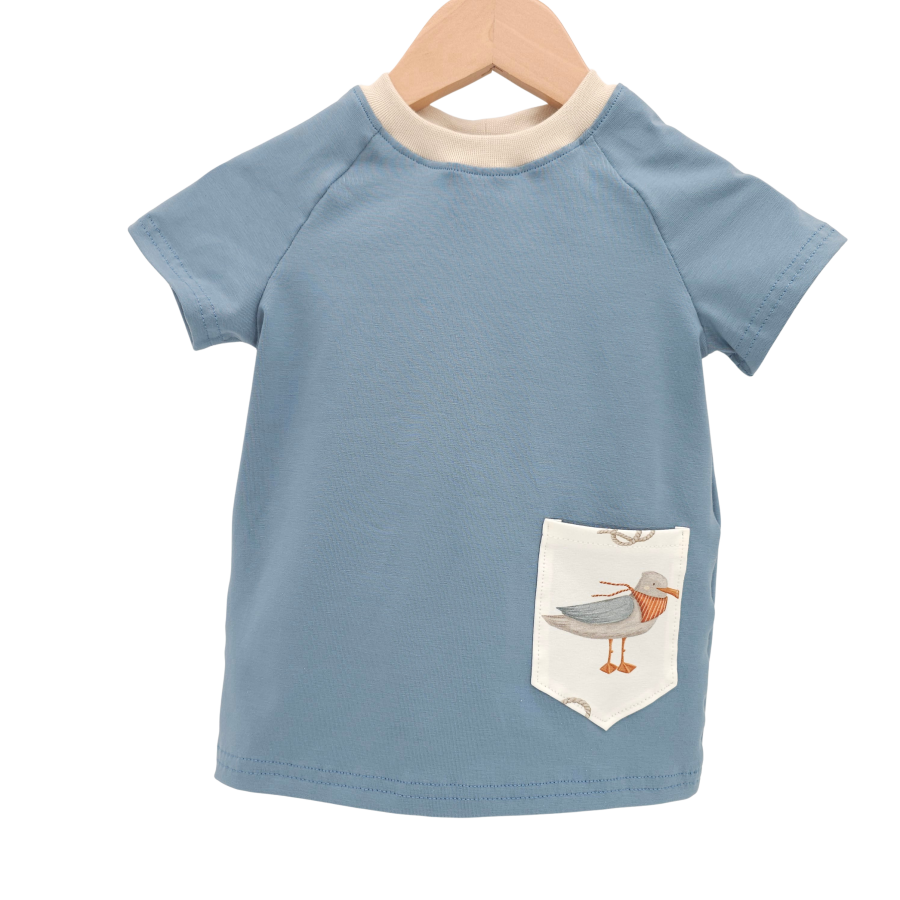 T-Shirt Basic taubenblau mit Tasche Küstenkind Möwe